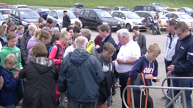 Ausgabe der Verzehrgutscheine beim Betreten des Schiffs. Bild: Thorsten Schmitt ExtremNews