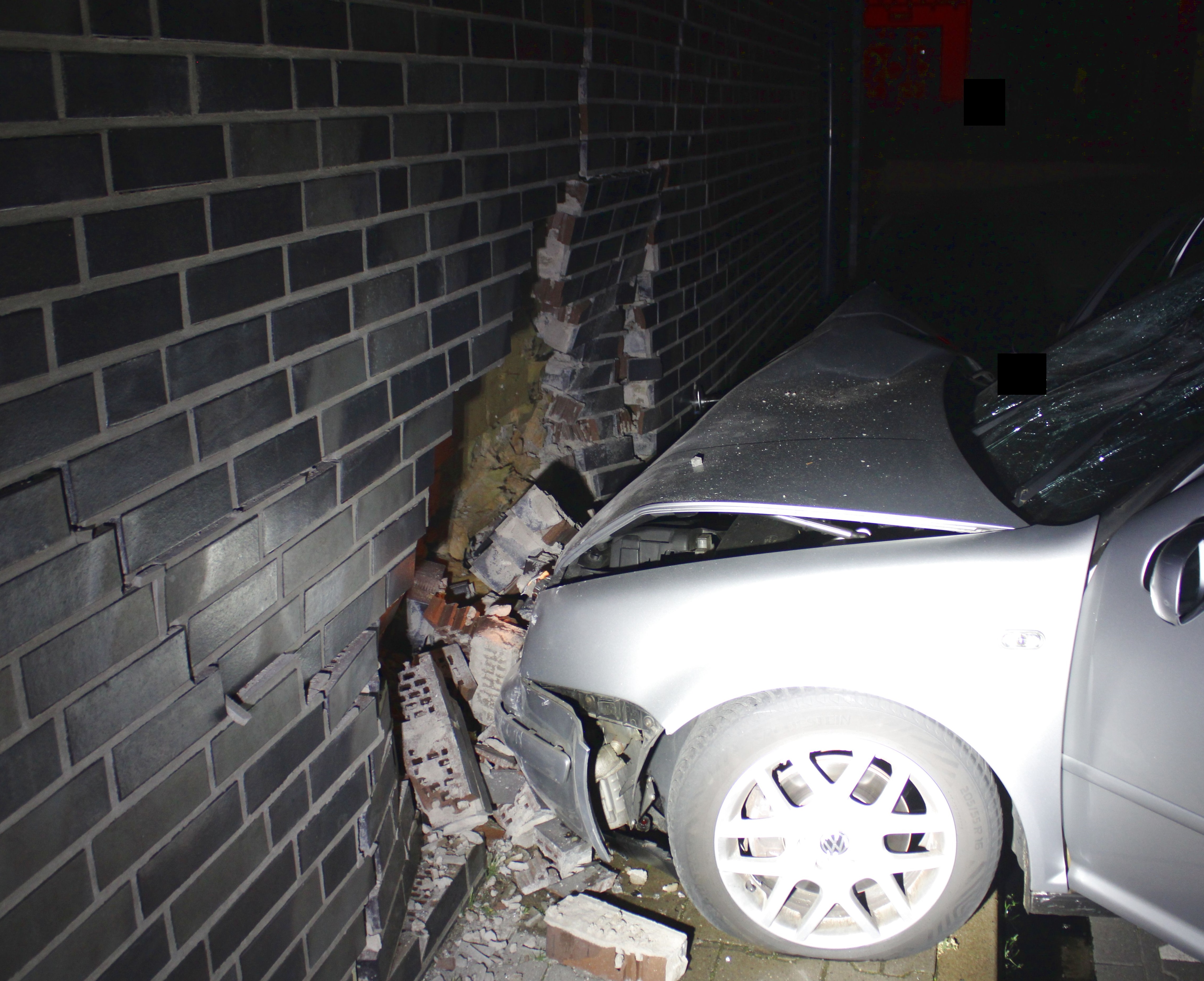 Peußisch Oldendorf: Unfallflucht: Auto kracht in Hauswand