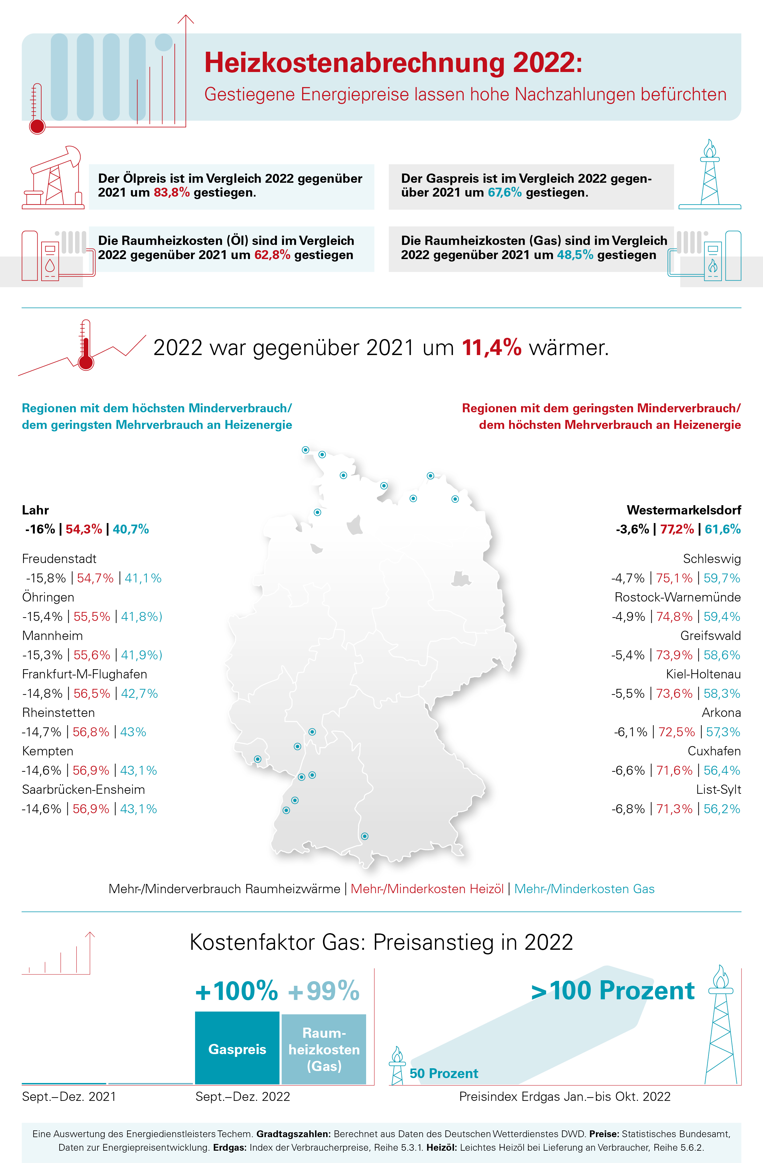 Zurück zu Heizkostenabrechnung 2022: Gestiegene Energiepreise lassen hohe Nachzahlungen befürchten - trotz geringerem Energieverbrauch
