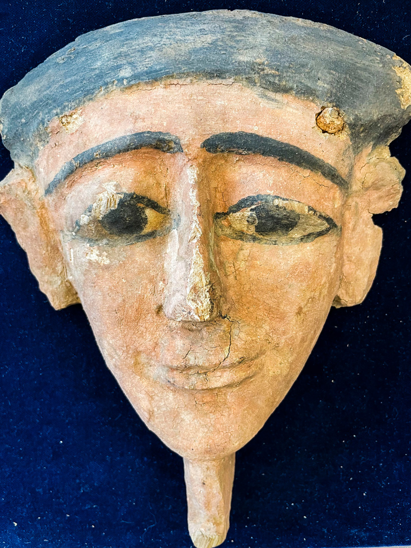 Stil, Bearbeitung und Form dieser Sargmaske lassen auf die Dritte Zwischenzeit beziehungsweise Spätzeit des Alten Ägypten schließen, circa 700 bis 300 vor Christus. Bild: Polizei