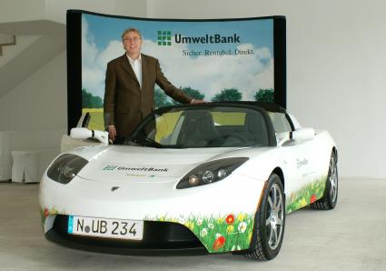 Elektro-Firmenwagen der UmweltBank "Tesla Roadster". Bild: obs/UmweltBank AG