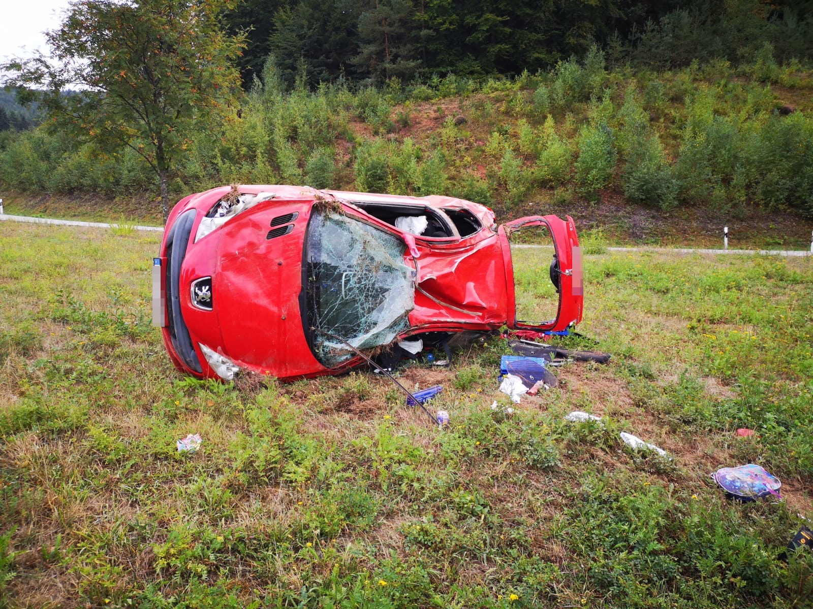 Überschlagener Pkw auf B10 mit zwei Verletzten