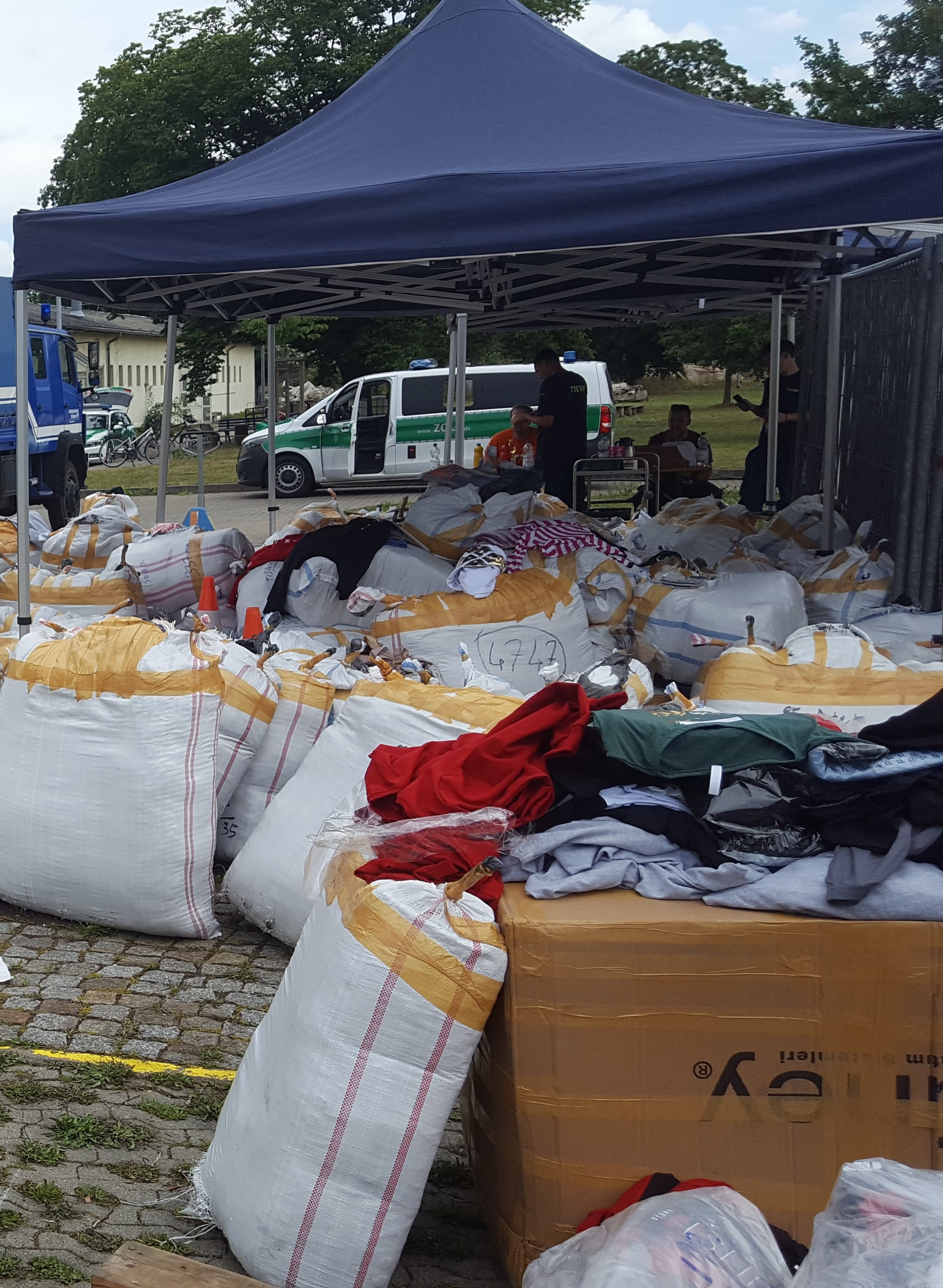 Säcke mit gefälschten Textilien nach dem Abladen Bild: Polizei