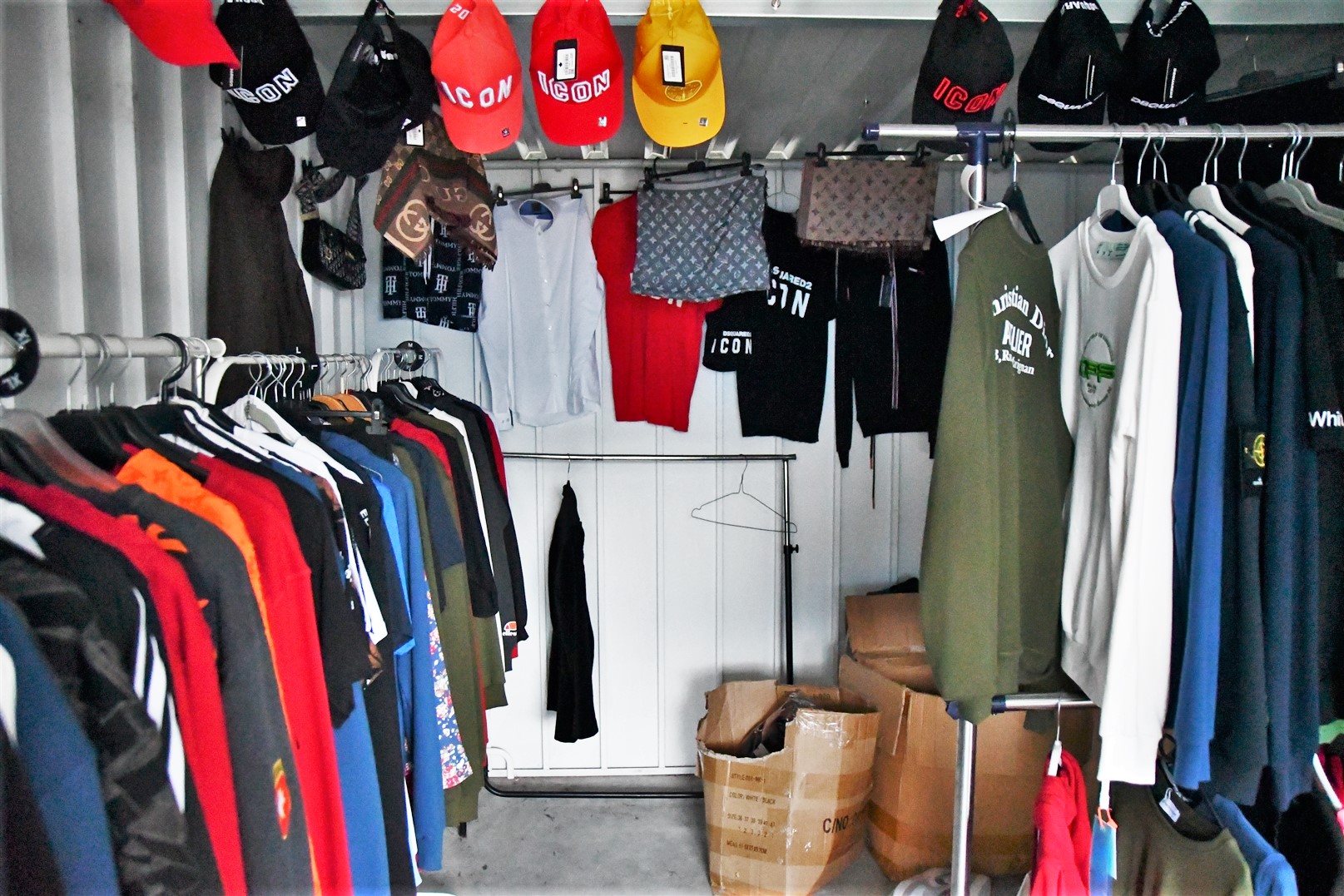 Garage mit gefälschten Kleidungsstücken Bild: Polizei