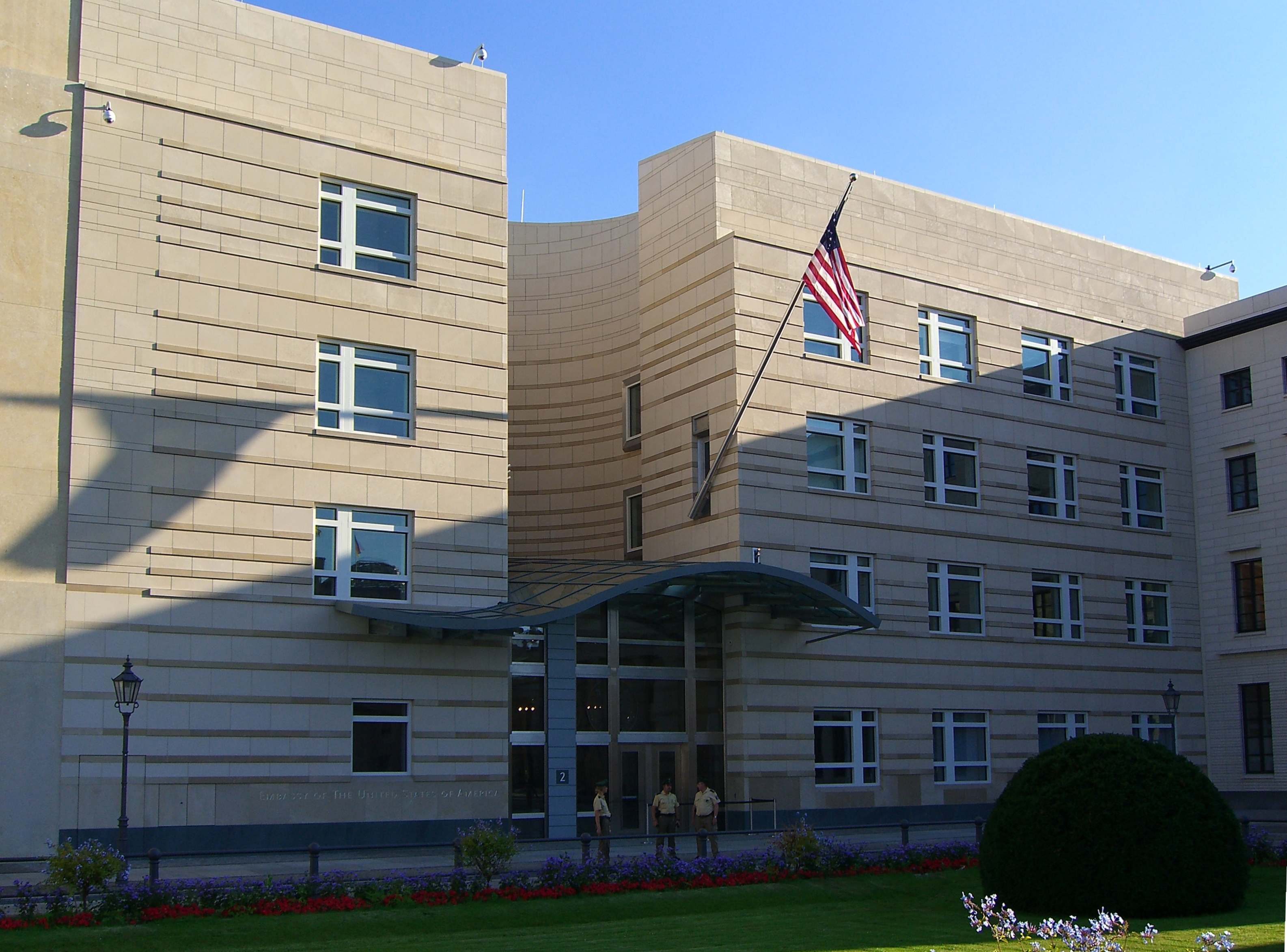 Die US-amerikanische Botschaft am Pariser Platz, rechts angeschnitten das neue Haus Sommer