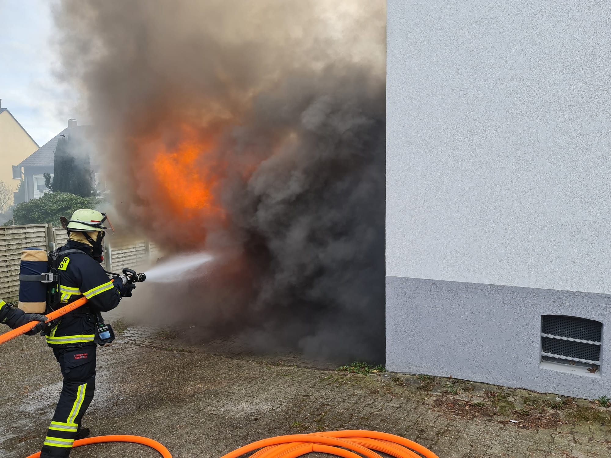 Zurück zu Dortmund: Feuer in einer Garage - Feuer am Wechselrichter greift auf PKW über