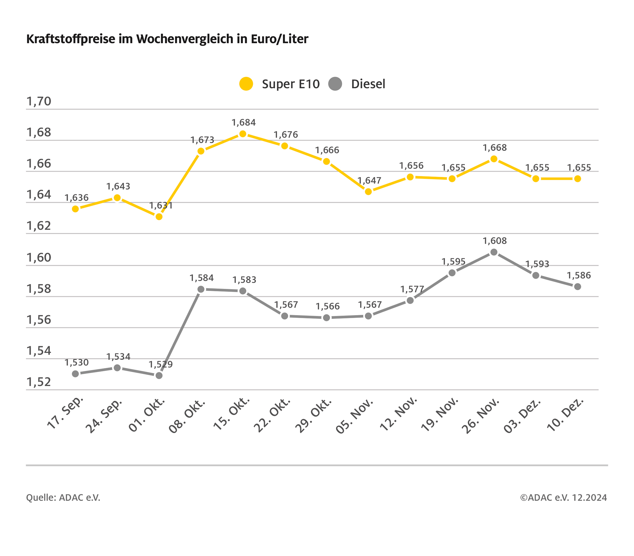 Kraftstoffpreise im Wochenvergleich