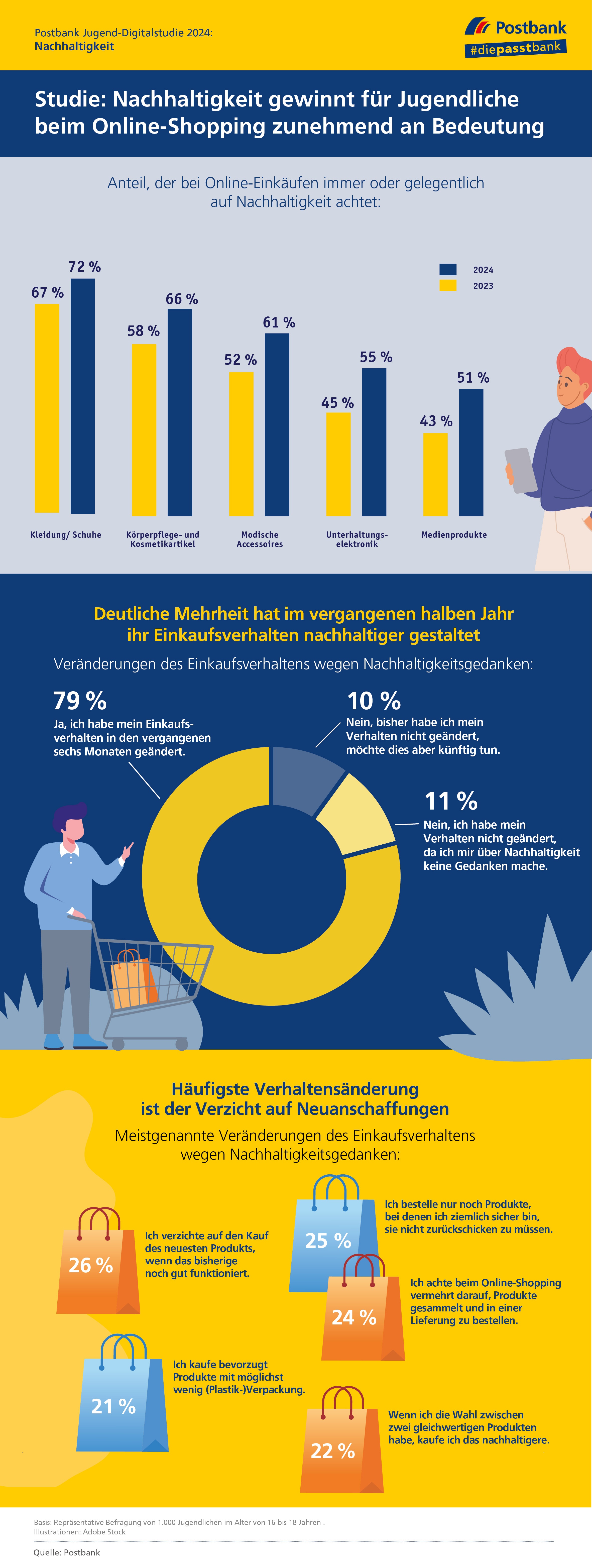 Zurück zu Studie: Jugendliche achten beim Online-Shopping zunehmend auf Nachhaltigkeit Postbank Jugend-Digitalstudie 2024