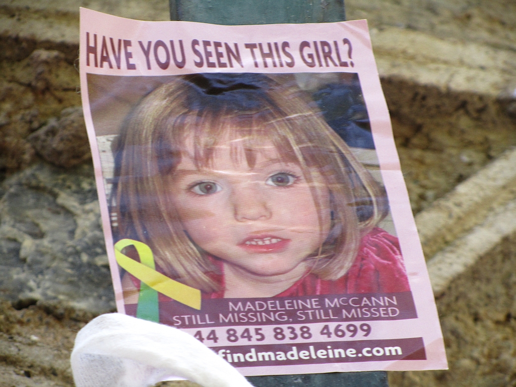 Plakat mit dem Bild von Madeleine McCann