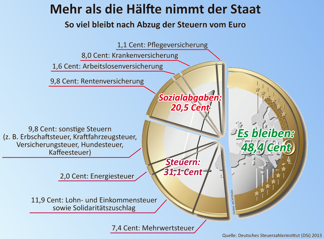 Schon 2013 bezahlten die Deutschen den Weltrekord von über 50% Steuern. Heute demonstrierten sie erfolgreich für weitere Steuererhöhungen (Symbolbild)