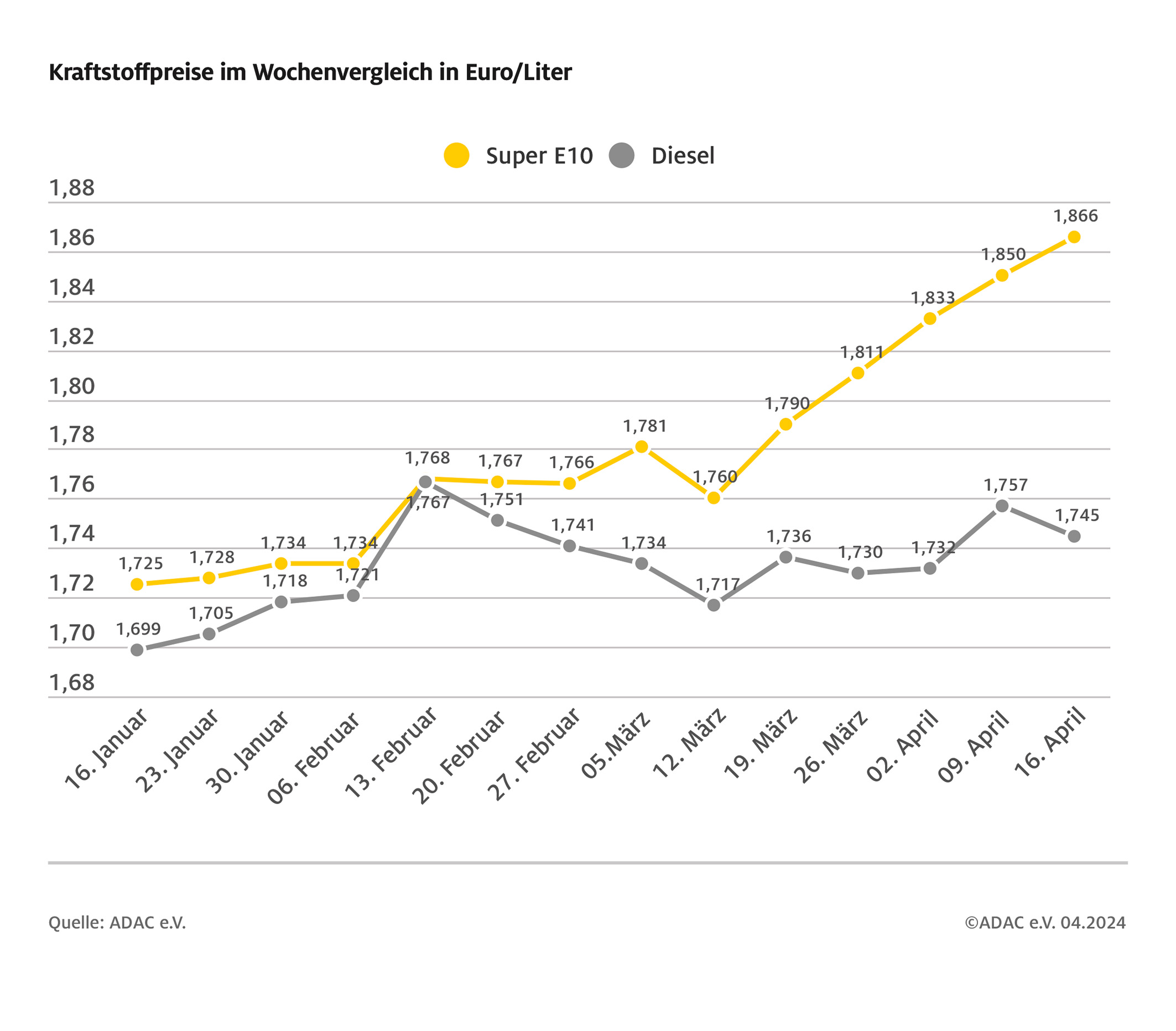 Zurück zu Benzinpreis auf neuem Jahreshöchststand: Super E10 zuletzt Anfang Oktober 2023 teurer Diesel im Wochenvergleich günstiger