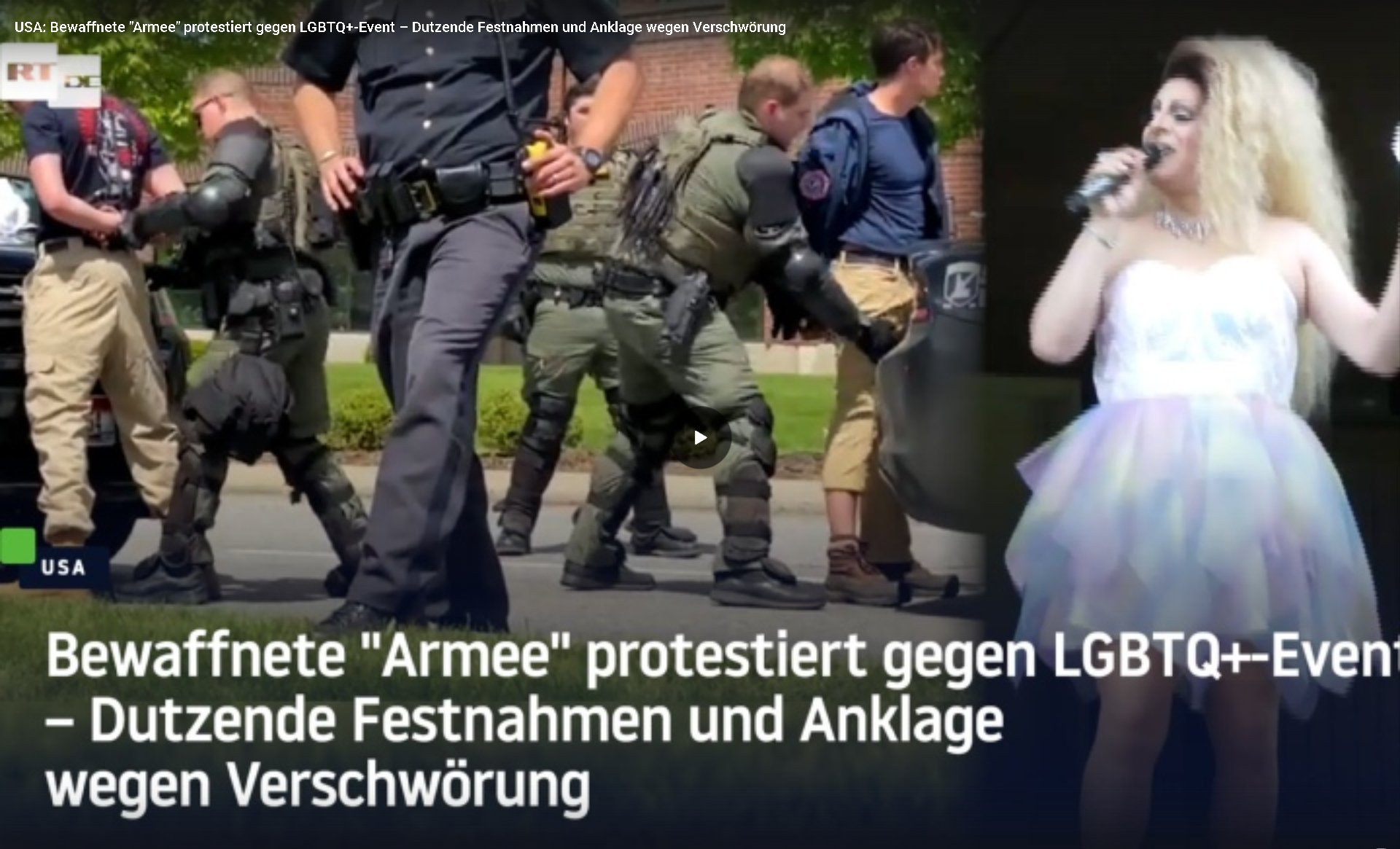 Zurück zu USA: Bewaffnete "Armee" protestiert gegen LGBTQ+-Event – Dutzende Festnahmen