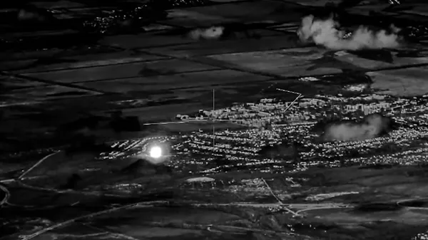 Zurück zu Russlands Verteidigungsministerium zeigt Zerstörung eines ukrainischen Munitionsdepots