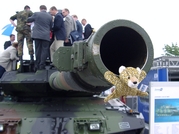 Leopard 2 Werbeaktion, aufgenommen auf der Rüstungsmesse Eurosatory, Juni 2002. © Facing Finance