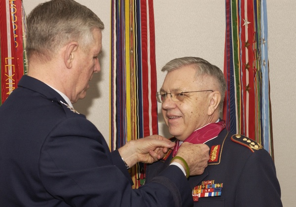 Harald Kujat wird mit der Legion of Merit von Richard Myers ausgezeichnet.