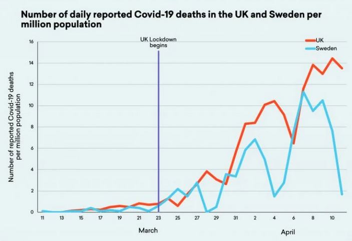 Ein Vergleich zwischen Großbritannien (Lockdown) und Schweden (kein Lockdown) zeigt keinen gravierenden Unterschied bei der Anzahl der erfassten Covid-19-Erkrankungen und -Todesfälle. Ist der Lockdown Deutschlands sinnlos?