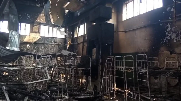 Ausgebrannte Schlafhalle im Kriegsgefangenenlager von Jelenowka (29.07.22) Bild: RIA Nowosti / Screenshot aus Video / Sputnik