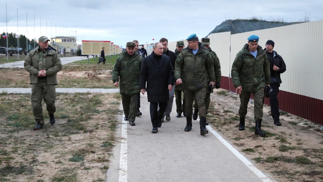 Archivbild: Russlands Präsident Wladimir Putin auf einem Übungsplatz im Gebiet Rjasan Bild: Michail Klimentjew / Sputnik