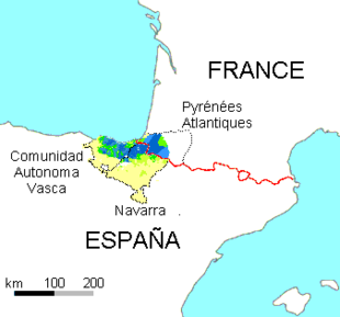 Baskisches Sprachgebiet am Golf von Biskaya Bild: Ulamm / de.wikipedia.org