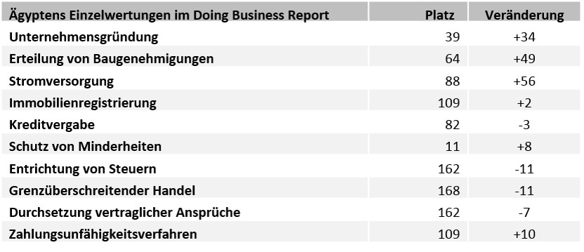 Ägyptens Einzelwertungen im Doing-Business Report der Weltbank 2017. Bild: "obs/GAFI Egypt"