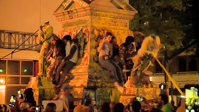 BLM-Aktivist von herabstürzender Statue des Südstaaten-Präsidenten Jefferson Davis schwer verletzt Bild: UM / Eigenes Werk