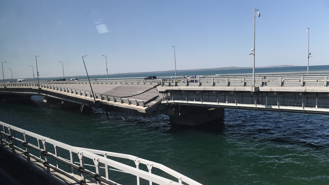 17. Juli 2023: Der beschädigte Teil der Krimbrücke Bild: Sputnik / Konstantin Michaltschewski