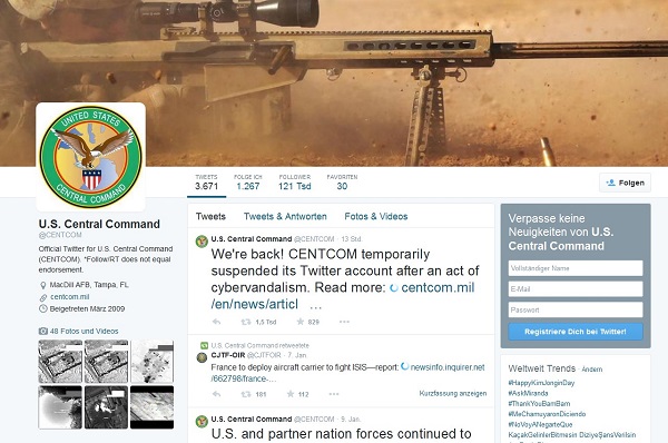Zurück zu Twitter-Account des US-Militärs offenbar von Islamisten gehackt