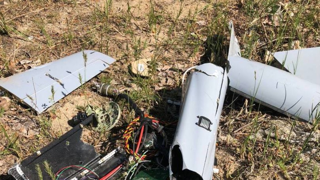 Trümmer der abgeschossenen Drohne in Energodar (Foto aus der Telegram-Nachricht von Wladimir Solowjow), 27. April 2022