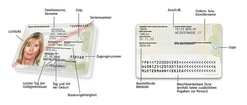 Deutscher Personalausweis seit dem 1. November 2010 (Muster)
