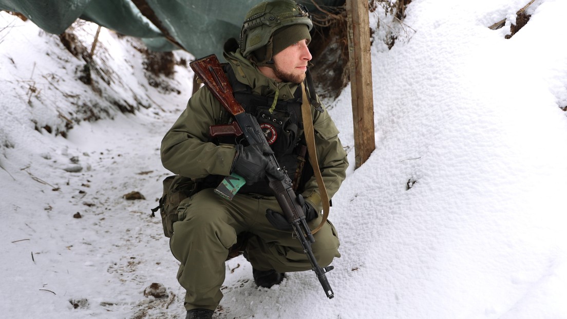 Ein Soldat einer Einheit der Internationalen Brigade "Pjatnaschka" im Raum Awdejewka, 14. Februar 2023 Bild: Sputnik / Сергей Аверин/РИА Новости