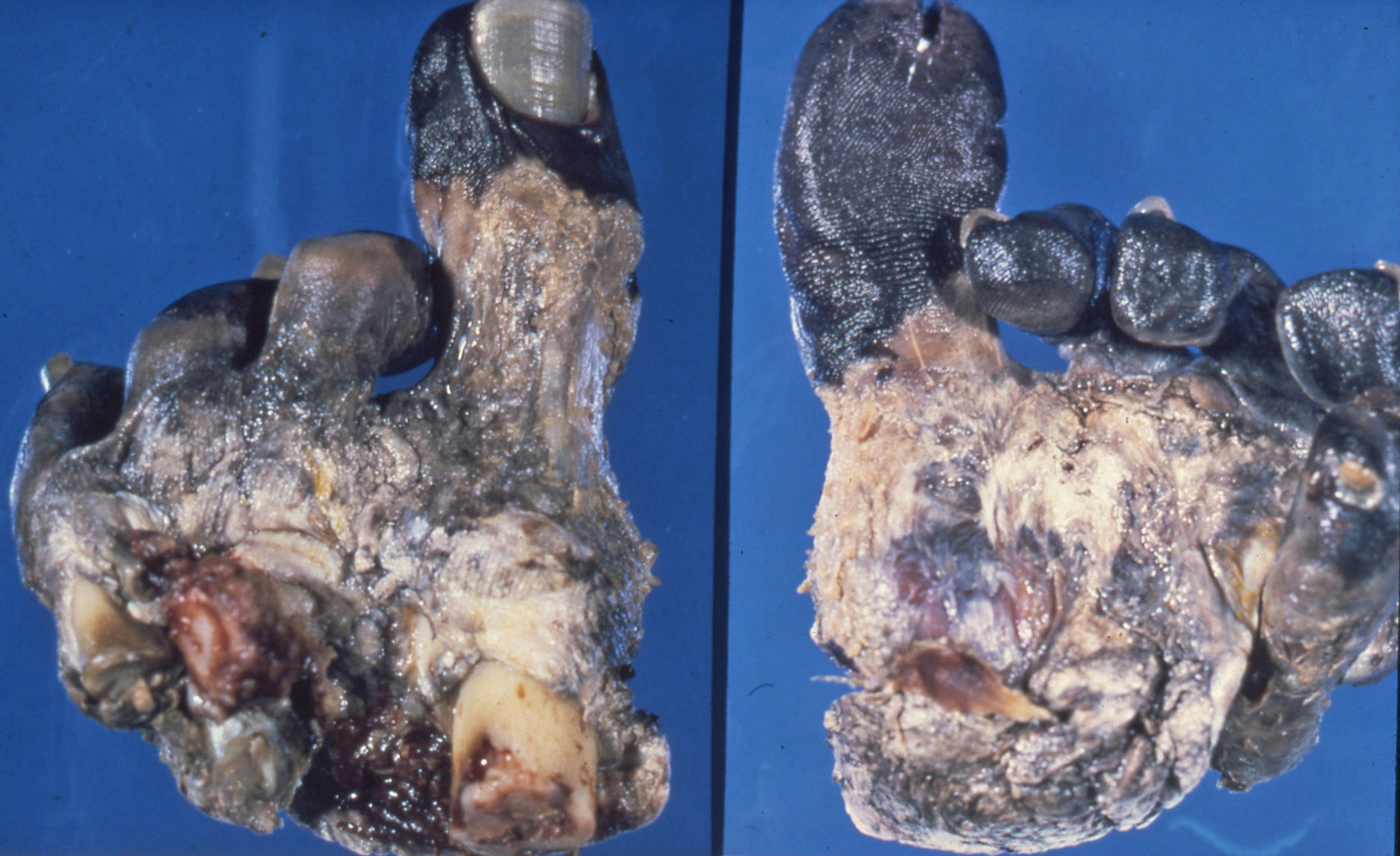 Erfrohrene Füße im Endstatium (Symbolbild)