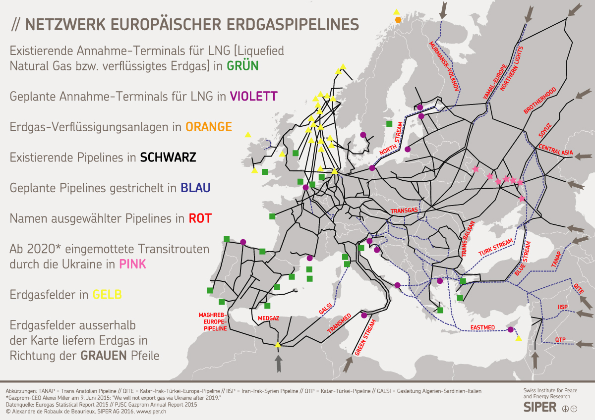 Netzwerk europäischer Erdgaspipelines, Stand 2020