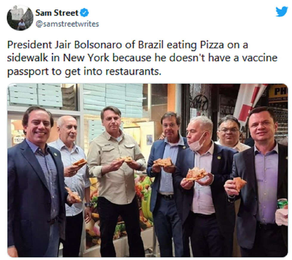 Zurück zu Wegen fehlender Impfung: Brasiliens Präsident muss in New York auf Bürgersteig speisen