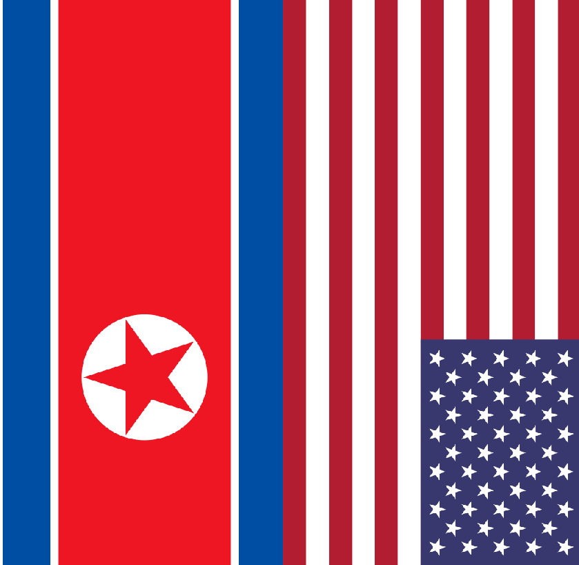 Flaggen von Nordkorea und den Vereinigten Staaten von Amerika (USA/VSA): Ein Stern gegen viele...