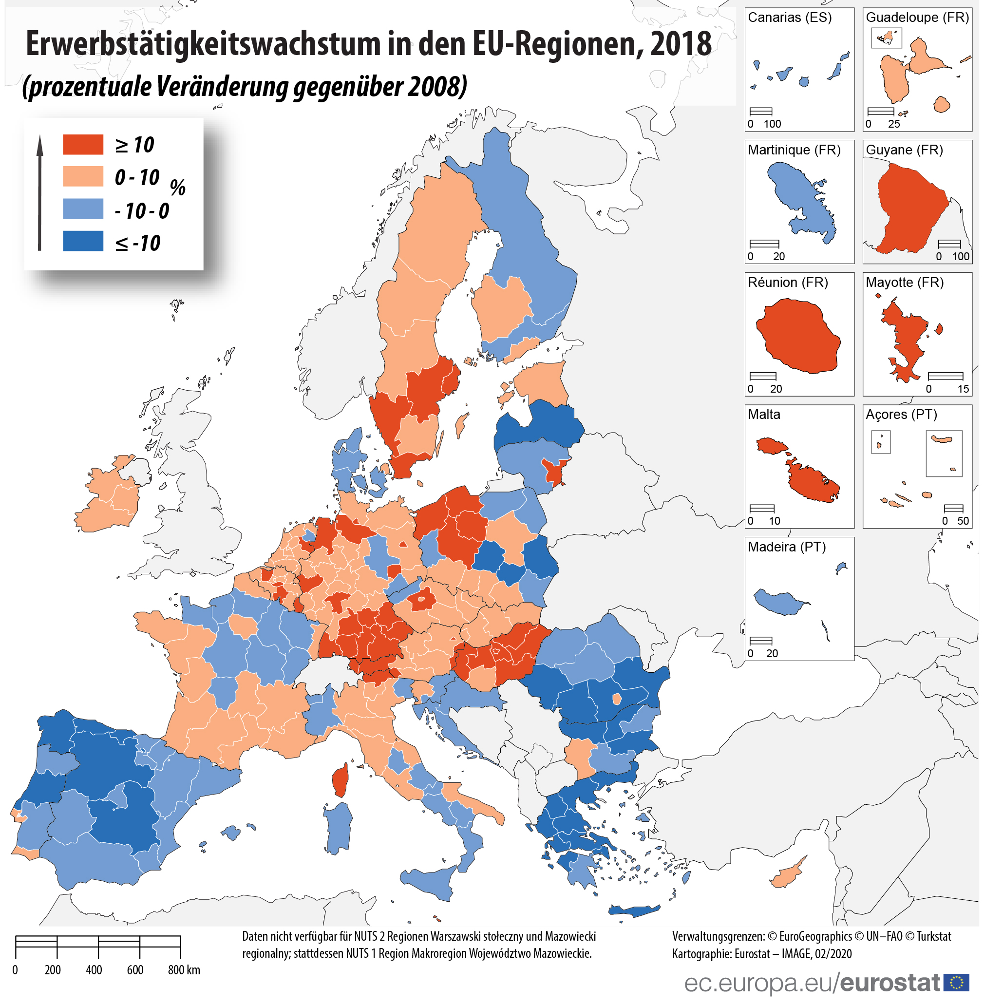 Zurück zu Erwerbstätigkeit in den EU-Regionen: Die Erwerbstätigkeit nahm 2018 in neun von zehn EU-Regionen zu