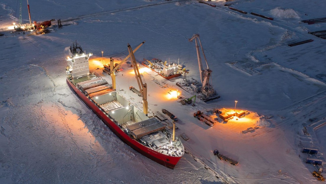 Schiff im Hafen Sabetta im Föderationskreis Ural. Russland, 07.12.2020. Bild: Legion-media.ru / Valerii Kadnikov