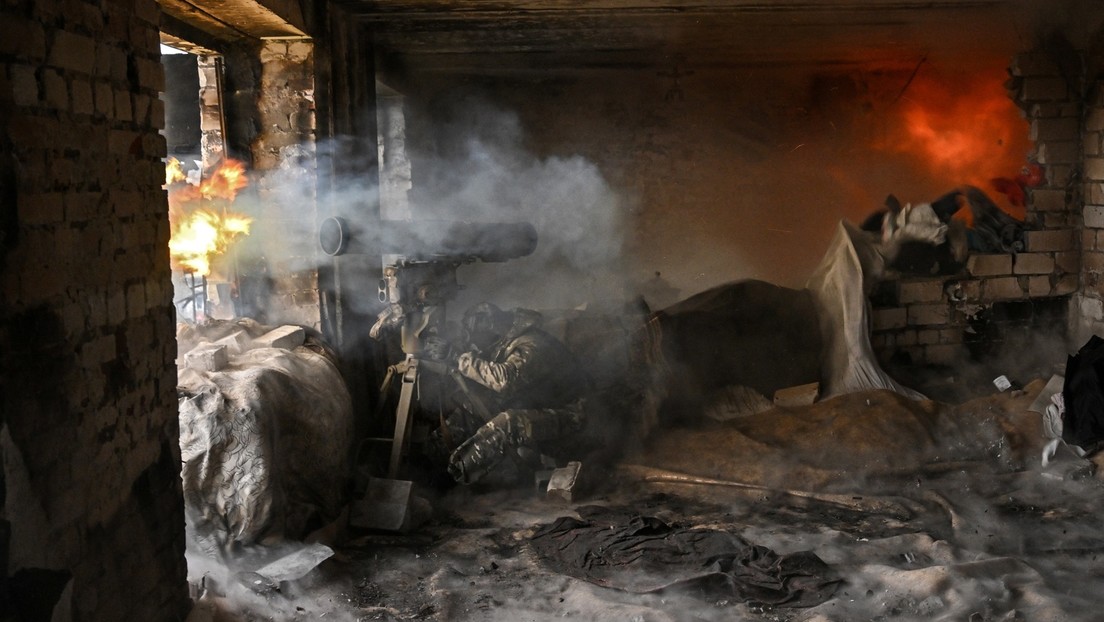 Archivbild: Ein Kämpfer des privaten Militärunternehmens Wagner in Artjomowsk, 22. April 2023. Bild: Sputnik / JEWGENI BIJATOW
