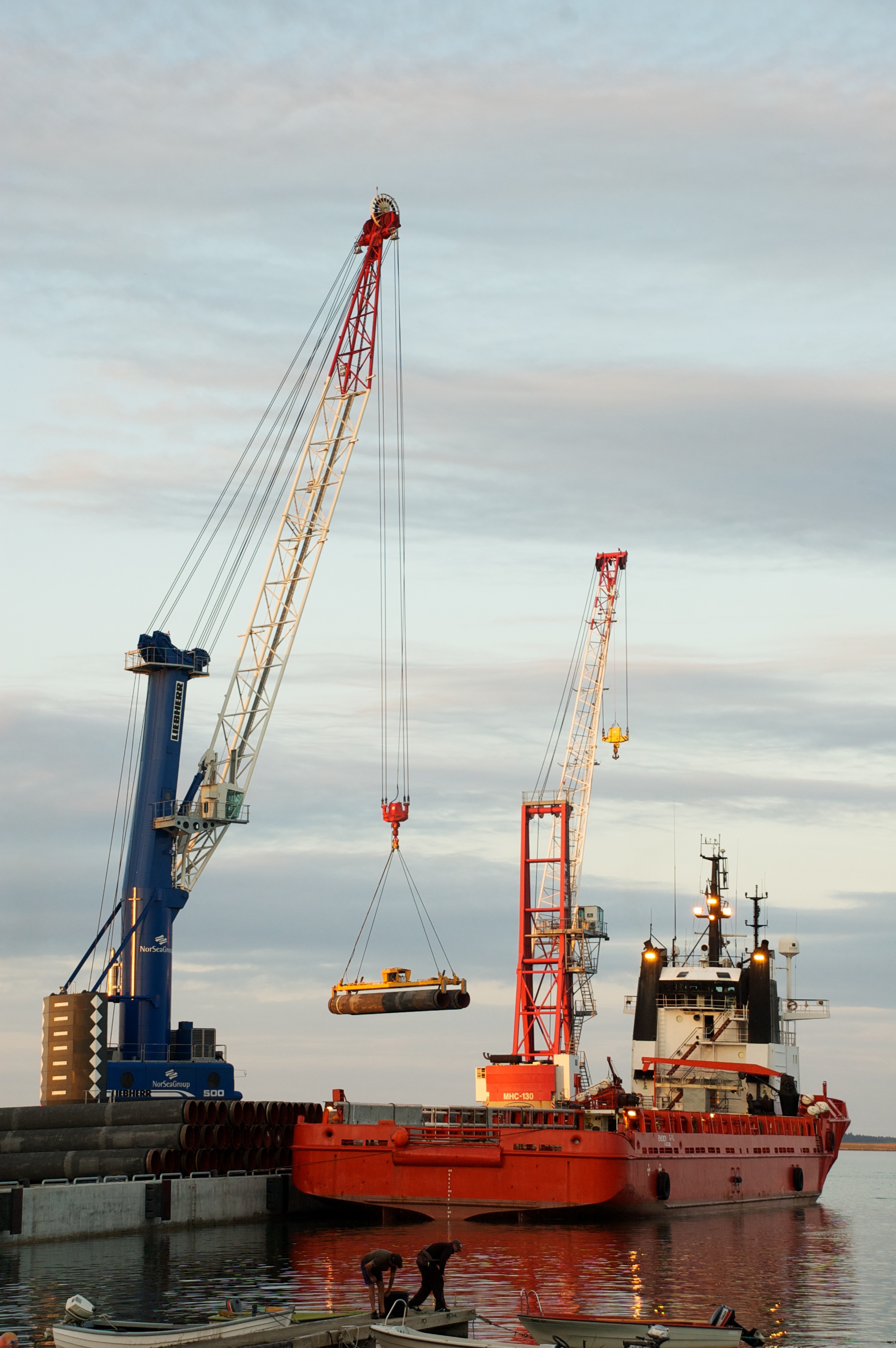 Verladung der Betonummantelten Pipelinerohre (Symbolbild)