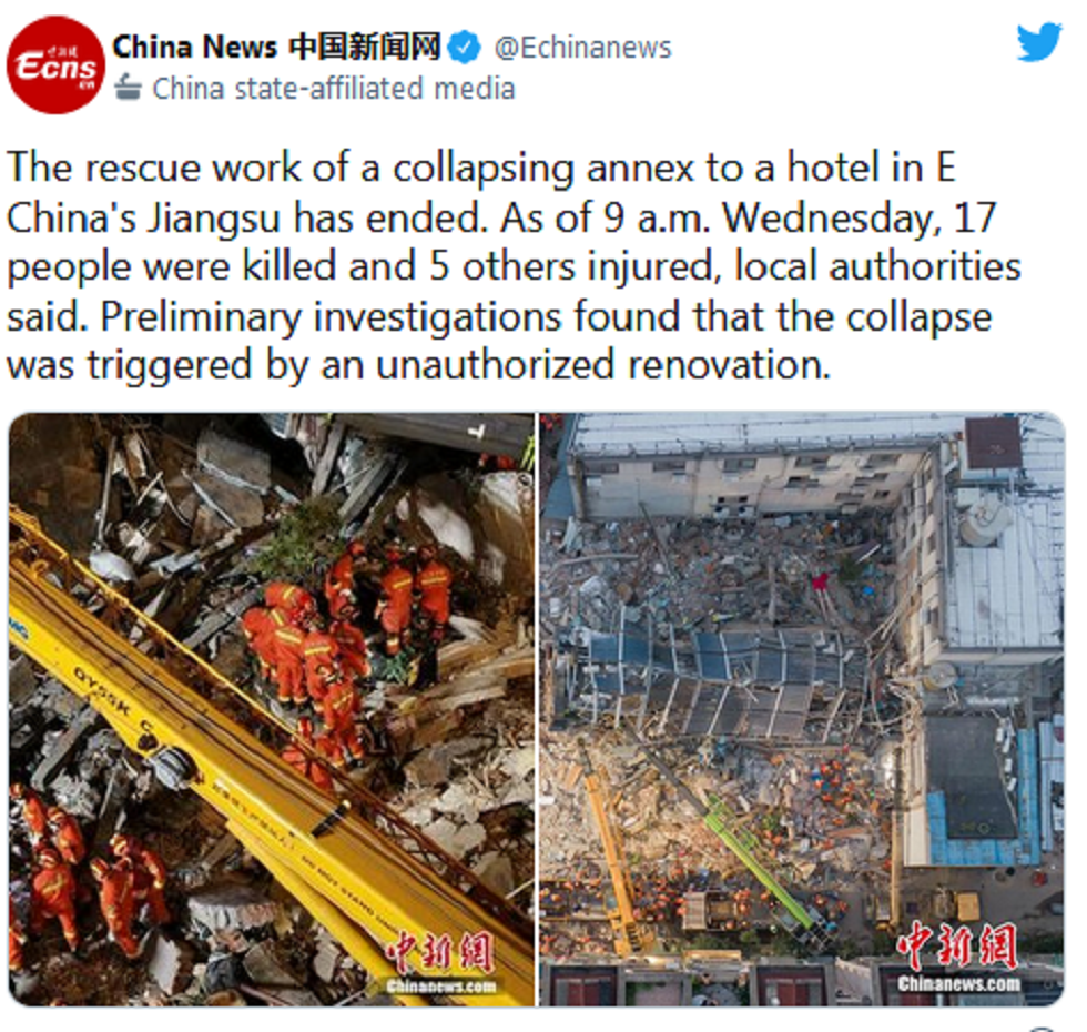 China: Zahl der Todesopfer steigt nach Hoteleinsturz auf 17