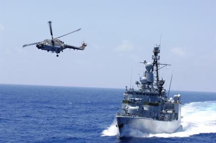 Die Fregatte "Niedersachsen" mit Bordhubschrauber "Sea Lynx".