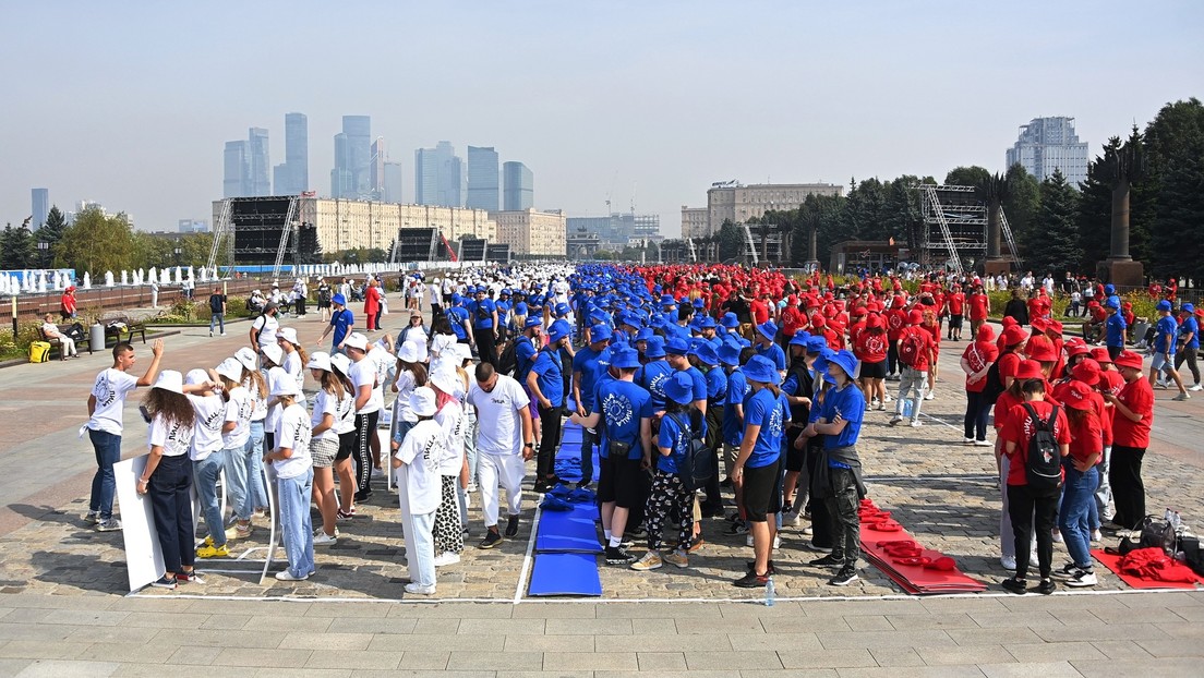 Teilnehmer eines Festes in Moskau, 22. August 2022. Bild: Sputnik / JEWGENI ODINOKOW