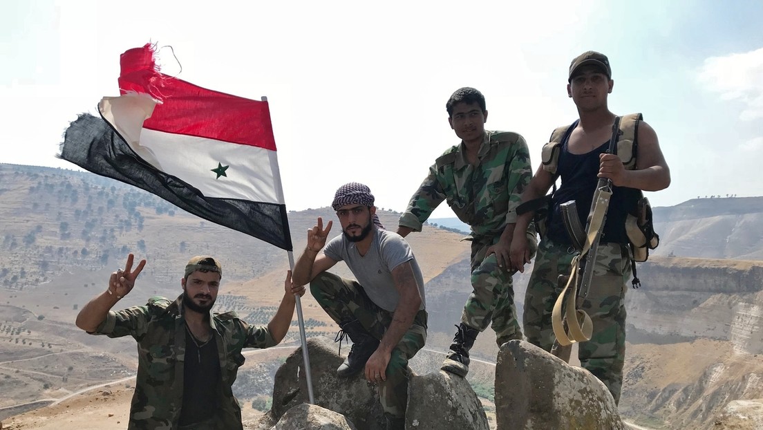 Symbolbild: Syrische Soldaten hissen ihre Nationalflagge an der an der Grenze zu Jordanien.