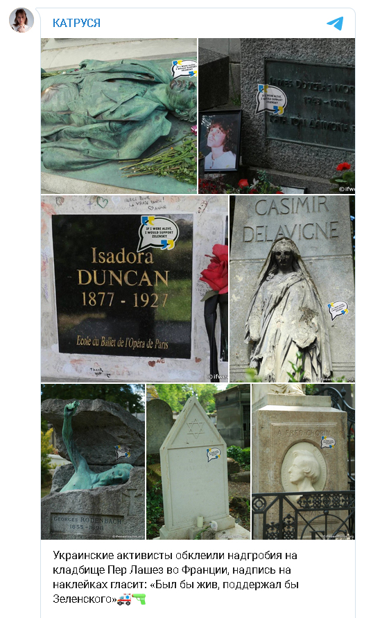 Zurück zu "Aktion" für Selenskij in Paris: Vandalen schänden Grabsteine von Berühmtheiten mit Sprechblasen