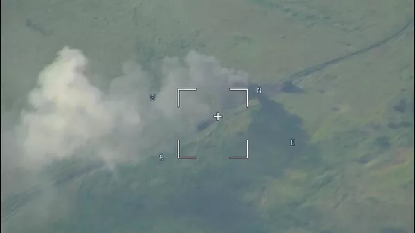 Zurück zu Aufnahmen des russischen Verteidigungsministeriums: Mine zerstört Panzerwagen aus US-Produktion