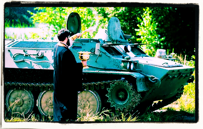 Traditionelles Waffen kirchliches segnen von tötlichen Waffen (Symbolbild)
