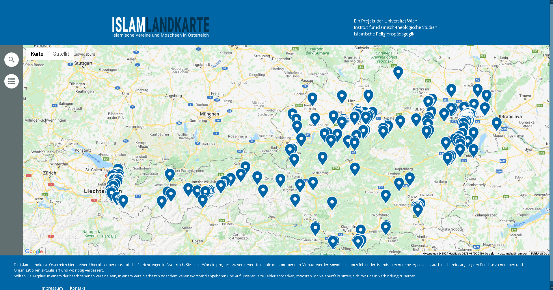 Bild: Screenshot Internetseite: "https://www.islam-landkarte.at/" / Eigenes Werk
