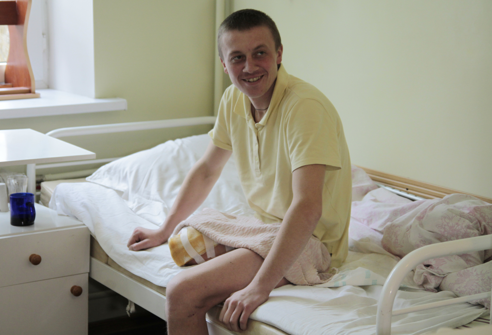 Archivbild: Ein verwundeter ukrainischer Soldat in einem Krankenhaus in Donezk. Bild: RIA Nowosti / Sputnik