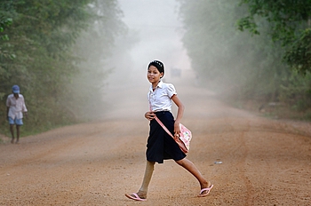 Vor acht Jahren riss Kanha ein Blindgänger das rechte Bein halb ab. Heute trägt sie eine Prothese von Handicap International und möchte Anwältin oder Ärztin werden. Bild: © Eric Martin / Figaro Magazine / Handicap International