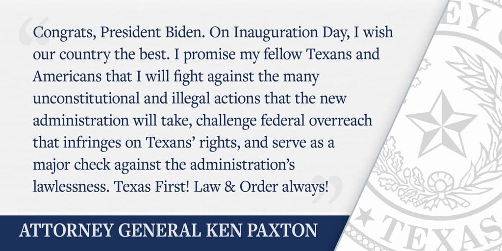 Originalrede von Ken Paxton zur Amtseinführung Bidens, 20.01.2021