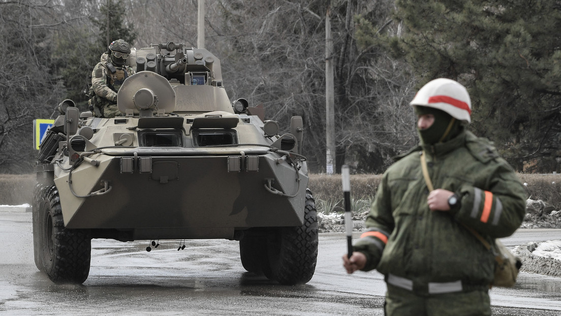 Russisches Militärfahrzeug in der Nähe der Grenze zwischen der Krim und der Ukraine, 02.03.2022